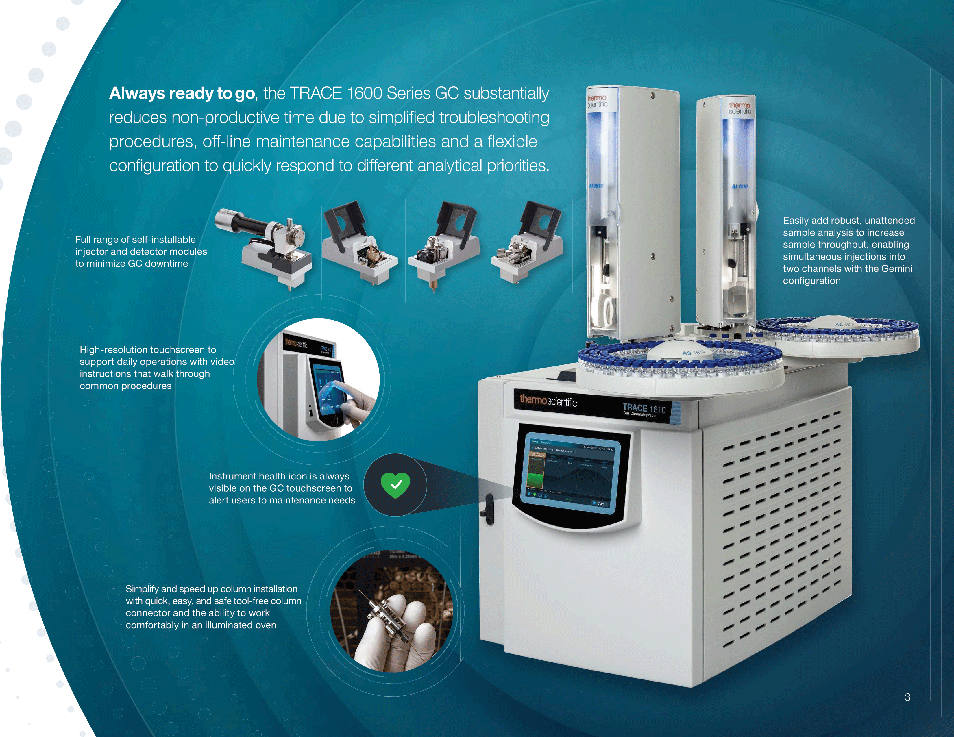 Газовая хроматография — это современный физико-химический метод анализа. Позволяет с высокой селективностью разделять и идентифицировать летучие и полулетучие, устойчивые к повышению температуры (термостабильные) вещества. Газовый хроматограф — идеальный инструмент для качественного и количественного исследования образцов разного состава. Газовая хроматография применяется для контроля производства и безопасности продуктов и полупродуктов во многих отраслях: в пищевой, нефтехимической, полимерной, фармацевтической промышленности, в производстве пластиков и лакокрасочных материалов. Газохроматографический анализ представляет собой также мощный инструмент контроля безопасности окружающей среды, широко применяется в криминалистике.